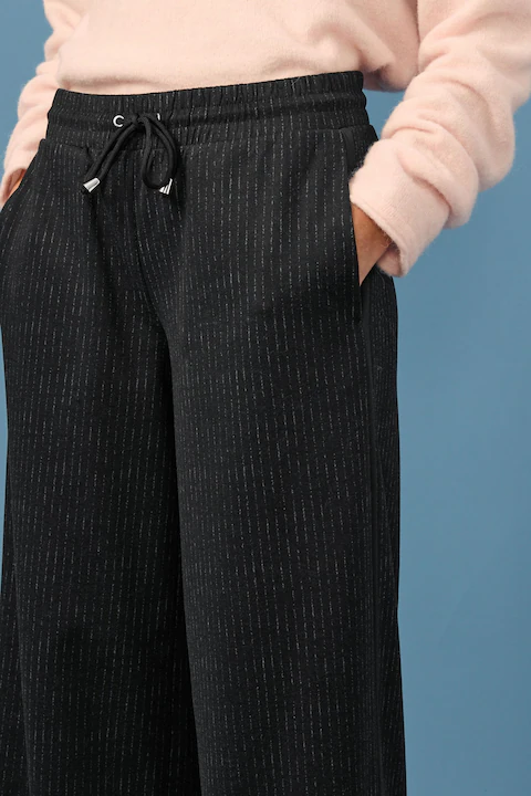 Be the first to review “Black Check Brushed Jersey Wide Leg Trousers”