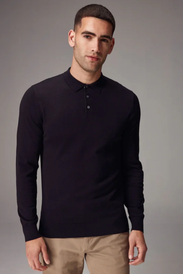 Be the first to review “Black Regular Fit Knitted Long Sleeve Polo Shirt”