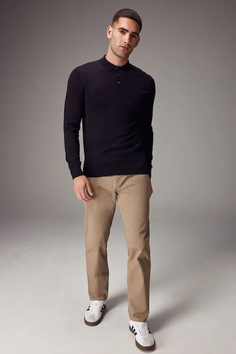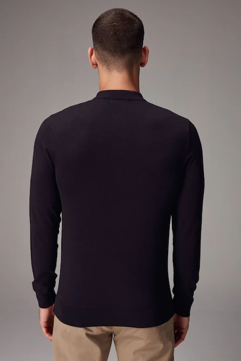 Black Regular Fit Knitted Long Sleeve Polo Shirt