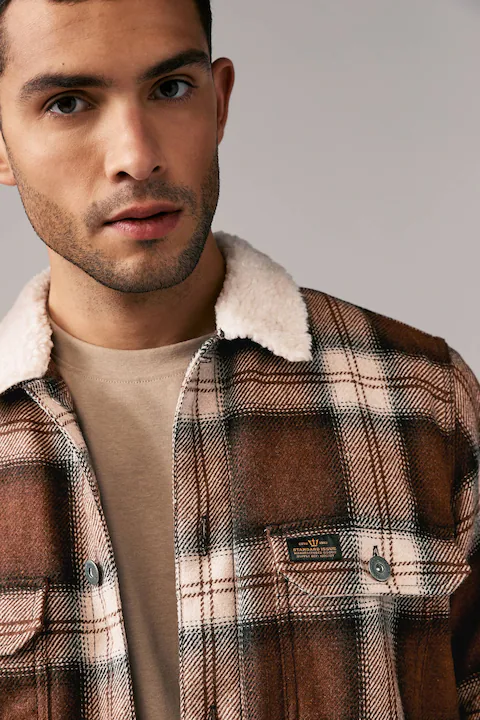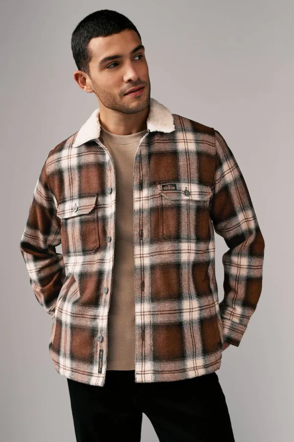 Brown Check Borg Lined Shacket