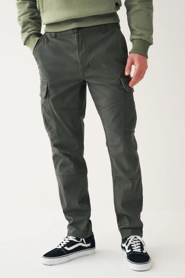 Grey Charcoal Slim Fit Cotton Stretch Cargo Trousers