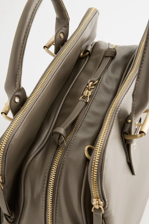 Taupe Brown Formal Multi Compartment Handheld Bag